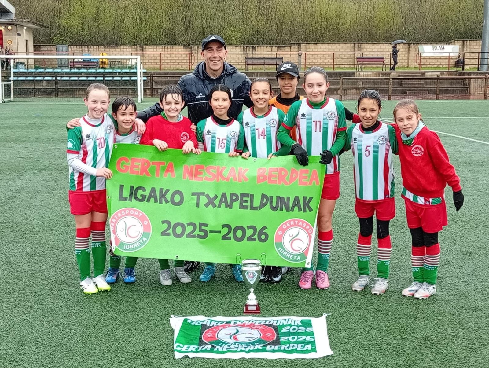Gerta Neskak Berdea taldeak bere alevin mailako multzoan liga irabazi du azken jardunaldian, Barakaldoko Ikhova taldeari irabazita.