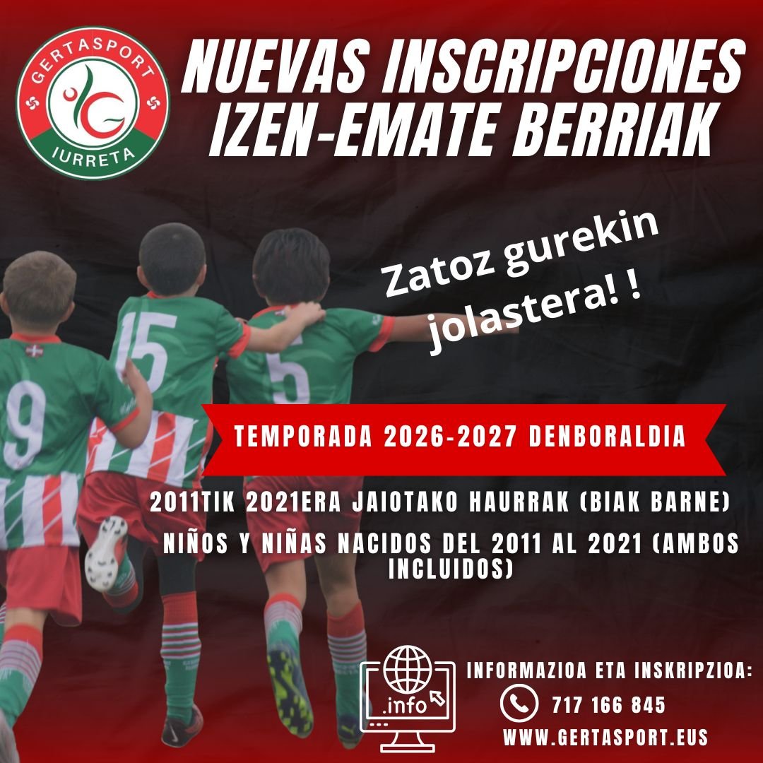 ¡Ya están abiertas las inscripciones para formar parte de Gertasport Kirol Klub la próxima temporada!